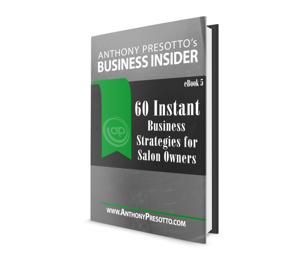 So, if you're serious about wanting own a successful salon and you want to know how to become a successful salon owner, then you need to grab a copy of " 60 instant business strategies for salon owners" right now, because salon owner and business Expert, Anthony Presotto, will reveal to you how every salon owner, regardless of experience level, can have their own success - Today!